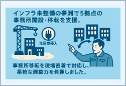 - 光回線導入や大規模事務所移転の統括対応