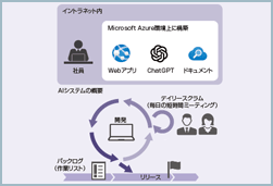 - 入力情報が社外で利用されない安全な環境でのChatGPT活用を可能とし、生産性向上と品質向上を目的とした、鹿島ITS部主導のAIシステム開発を支援